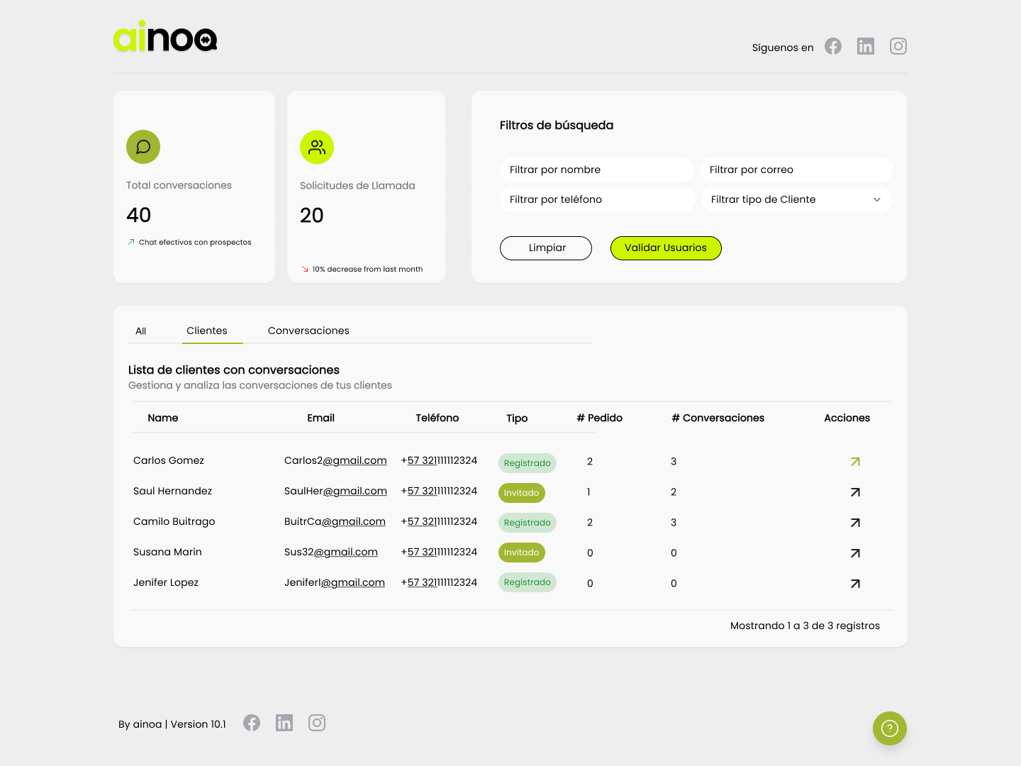 Automatiza la atención al cliente y aumenta tus ventas con ainoa 24/7, desde un solo lugar.